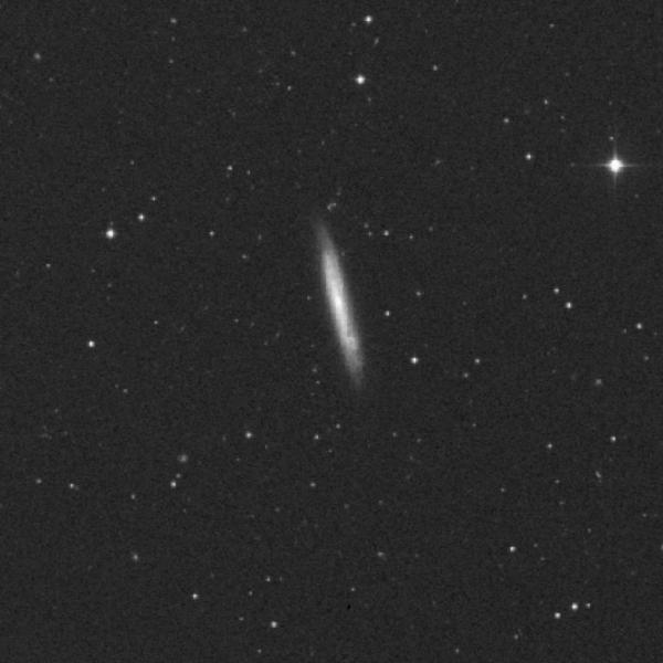 Il 30/04/2009 con Dobson 30cm Dimensioni contenute per questa galassia che mostra un bulge luminoso e un alone accennato sul fondo cielo. Niente nucleo. Copia |
